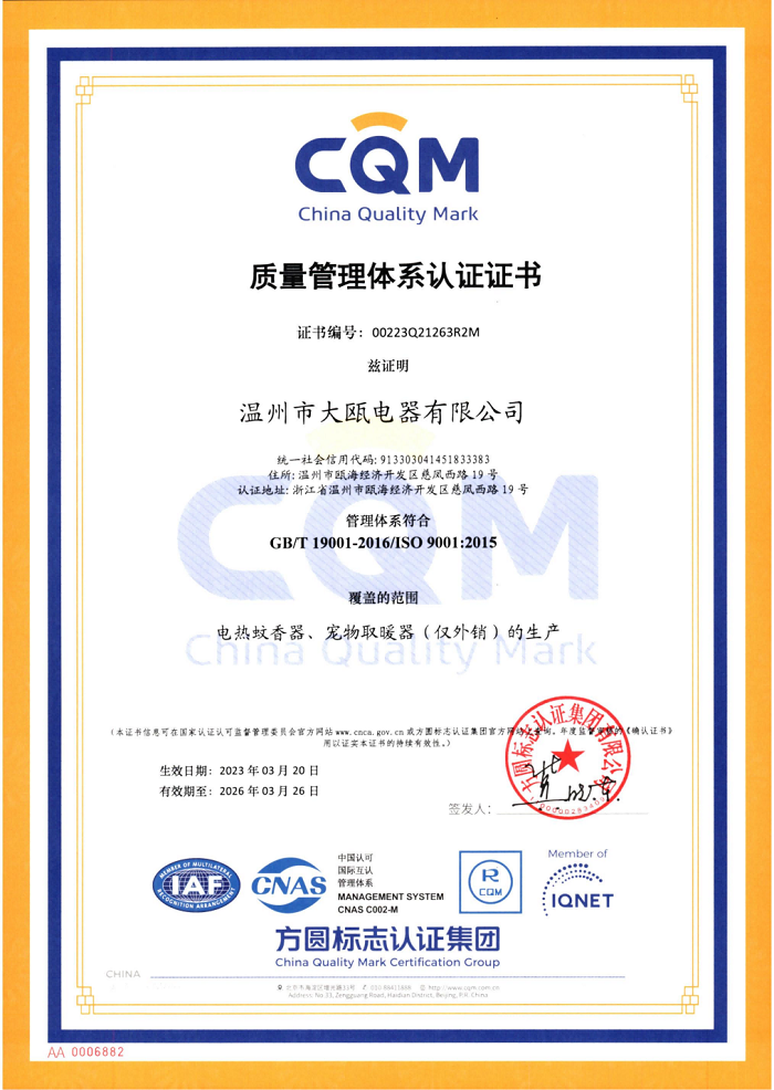 溫州市大甌電器有限公司(以下簡(jiǎn)稱(chēng)大甌公司)是集研發(fā)、制造為一體的日化電器專(zhuān)業(yè)生產(chǎn)制造商。